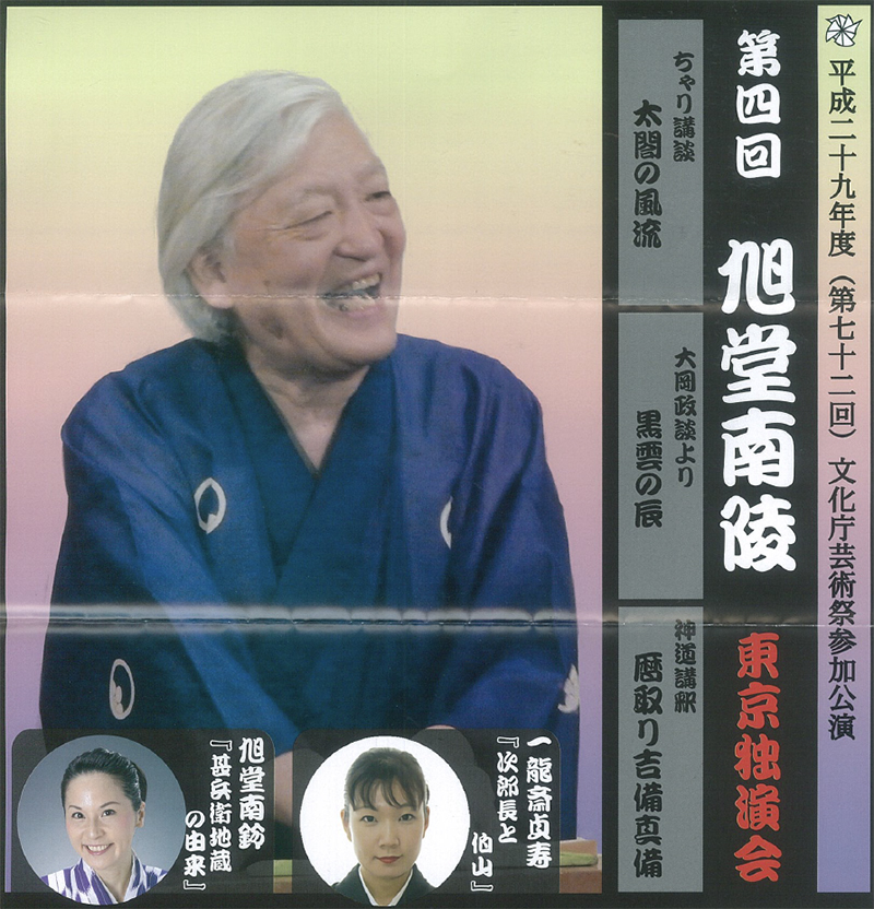 農学部の卒業生で現在、大阪芸術大学客員教授をしている講談師の旭堂南陵さんという方がいるのですが、その方が今度東京で独演会をされるとのことでご案内をいただきました。